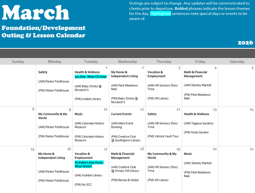 Throughout the month, clients will learn how nutrition, sleep, movement, and daily routines affect their energy, mood, independence, and well-being. Lessons and activities will emphasize that everyone has the ability to make choices—using the communication method that works best for them, whether that’s eye gaze, gestures, vocalizations, or other supports.