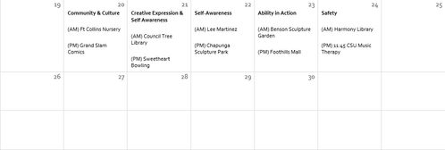 Throughout the month, participants will have opportunities to try new hobbies and recreational activities, spend time outdoors, and engage in hands‑on experiences such as planting and caring for plants. These activities support confidence, responsibility, choice‑making, and enjoyment while encouraging curiosity and participation.